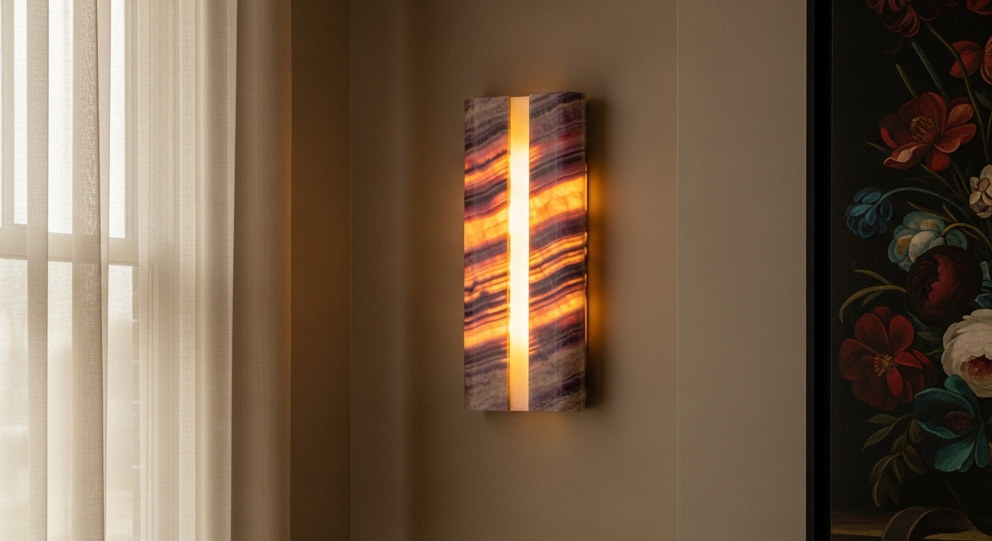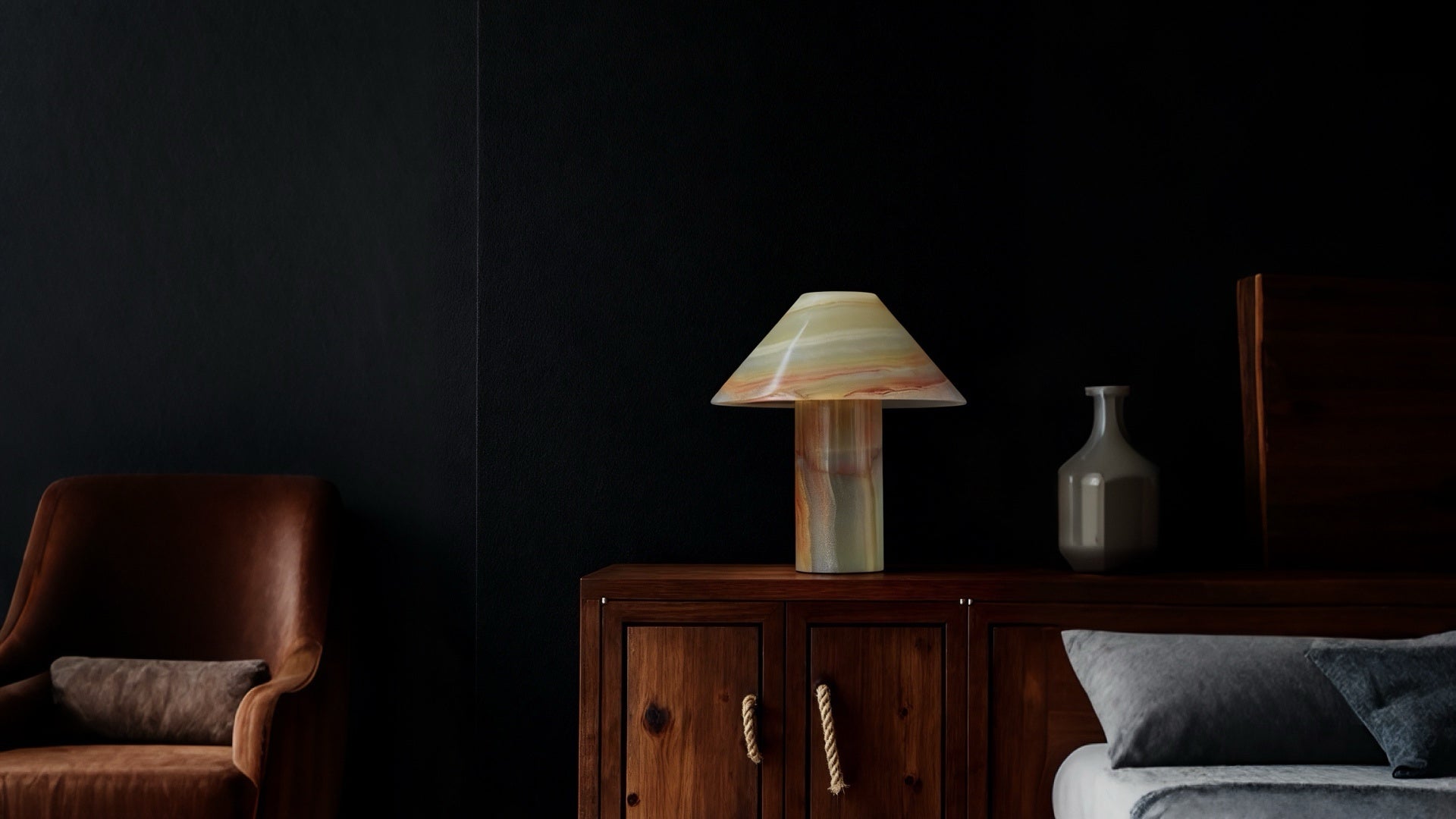 Curated marble and designer lighting chosen for timeless style and everyday function.